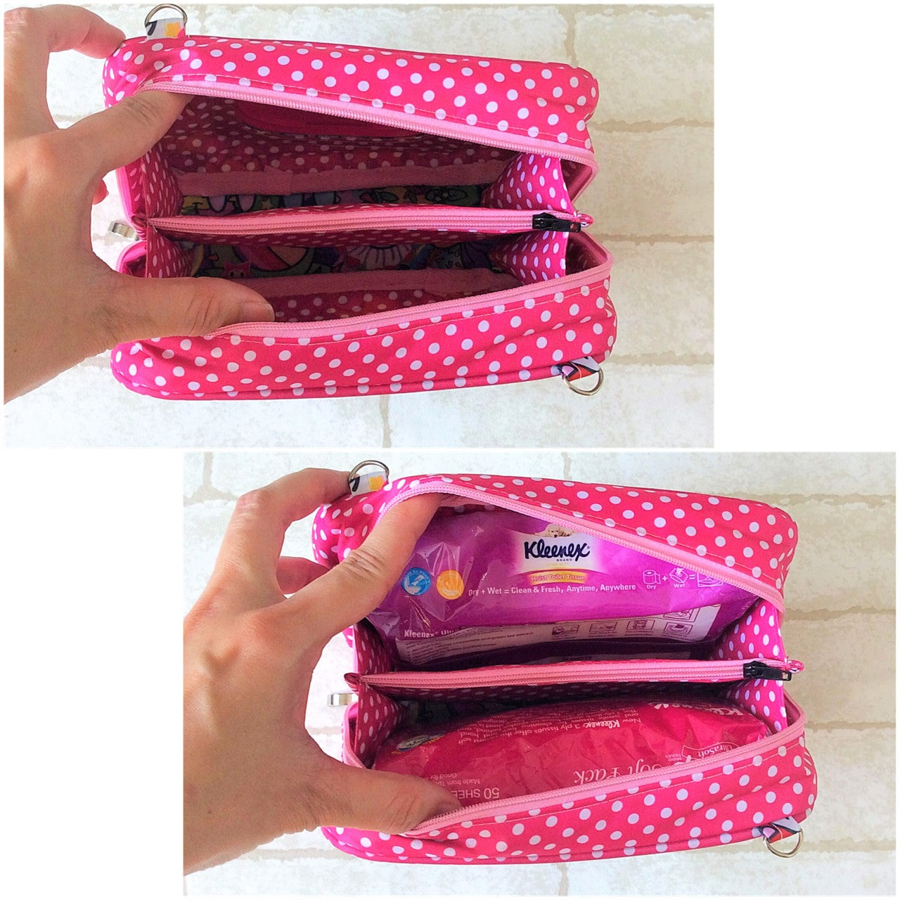 You can now have 2 Kleenex Tissue Packs in 1 Pouch! This lovely 2 in 1 tissue pouch has the capacity to hold BOTH WET AND DRY KLEENEX TISSUE PACKS. It has 2 D-rings on top of the pouch and comes with a complimentary detachable leather strap for you to hang onto your car, baby stroller, office desk panel or on your wall.
