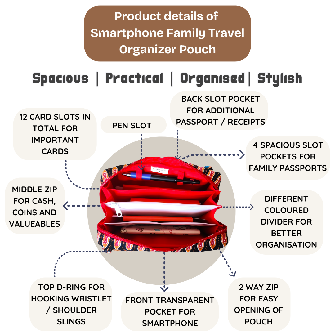 Smartphone Family Travel Pouch – Organise Your Journey in Style !
